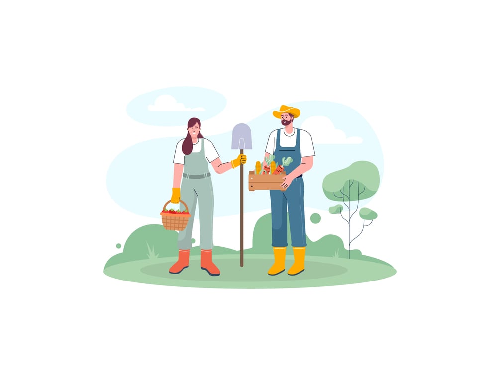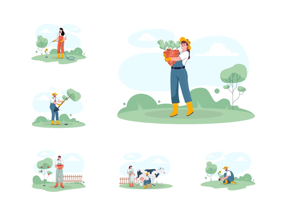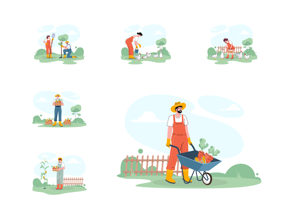 20 vector illustrations of man and woman doing farm activity.